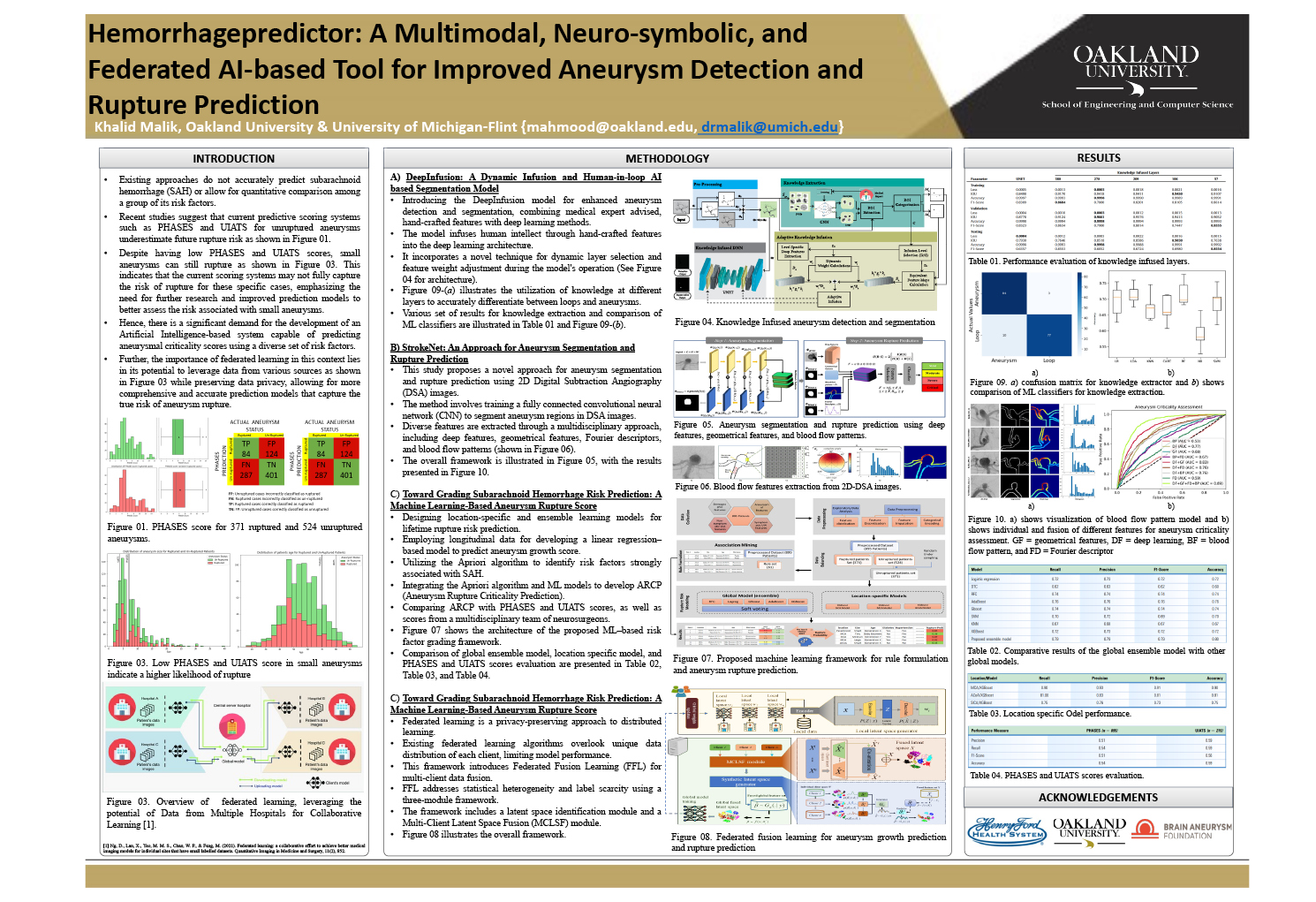 Pictured above is Dr. Malik’s research poster, “Integrating Federated and Neurosynbolic AI for Improved Aneurysm Detection and Rupture Prediction”