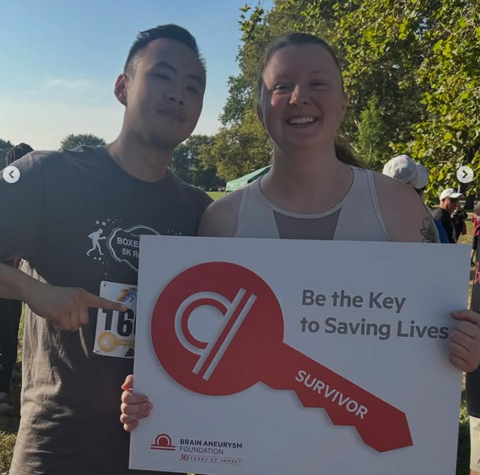 My story started in 2006 when my mom survived a ruptured AVM and aneurysm after undergoing surgery on her cervical spine. At the time, I was only 9, so I wasn’t entirely sure what was happening, but I knew my mom’s life was changed forever. 16 years later, in July 2022, I experienced my first thunderclap headache, what I later learned to be a sentinel bleed. I had had migraines my whole life, and thought it was something I inherited from my mom, but this one was different. I was taking a work call, and suddenly my vision tunneled, became blurry, the pain made me extremely nauseous, I couldn’t process what was being said to me or what I wanted to say, my blood pressure shot up, and my speech was slurred. My hearing felt like someone turned the radio down. This all happened again one day later. Being unaware of my own family history and knowing insurance and doctors wouldn’t support a scan for me, I waited. I know now that I am incredibly lucky that I had the chance to wait, as sentinel headaches are typically precursors for an aneurysm that will burst in a few days, weeks, or months.